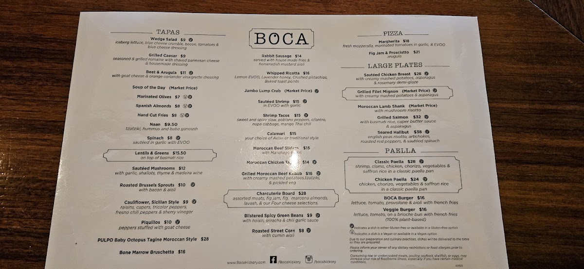 Welcome to the Boca Hickory Menu, where every dish is crafted with care and packed with flavor. Nestled in the heart of Hickory, North Carolina, this vibrant spot offers a blend of fresh ingredients and mouthwatering options that will leave you coming back for more. Whether you're in the mood for a classic burger, some flavorful seafood, or a delightful vegetarian option, Boca Hickory has something for everyone. The menu showcases a range of hearty meals that satisfy every craving, all served in a warm and welcoming atmosphere. From their signature appetizers to the decadent desserts, each dish promises a unique taste experience. Don't forget to explore their selection of drinks to pair with your meal, enhancing the entire dining experience.